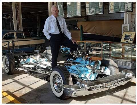 Now, I am not a big fan of Facebook, but on occasion I, too, venture into the new world of social media. A Facebook member posted a picture (see below) of a tall lanky young fellow standing on top of the famous working Chassis Display of Packard’s revolutionary self-leveling torsion bar suspension introduced in 1955.